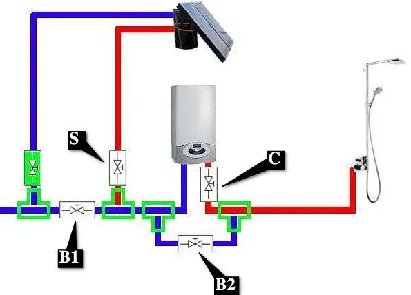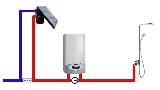 The drawback in this type of installation is that gas heaters have a very narrow coil, and this can reduce the pressure and flow of our tank if it lacks good pressure or is an inertia/gravity tank.