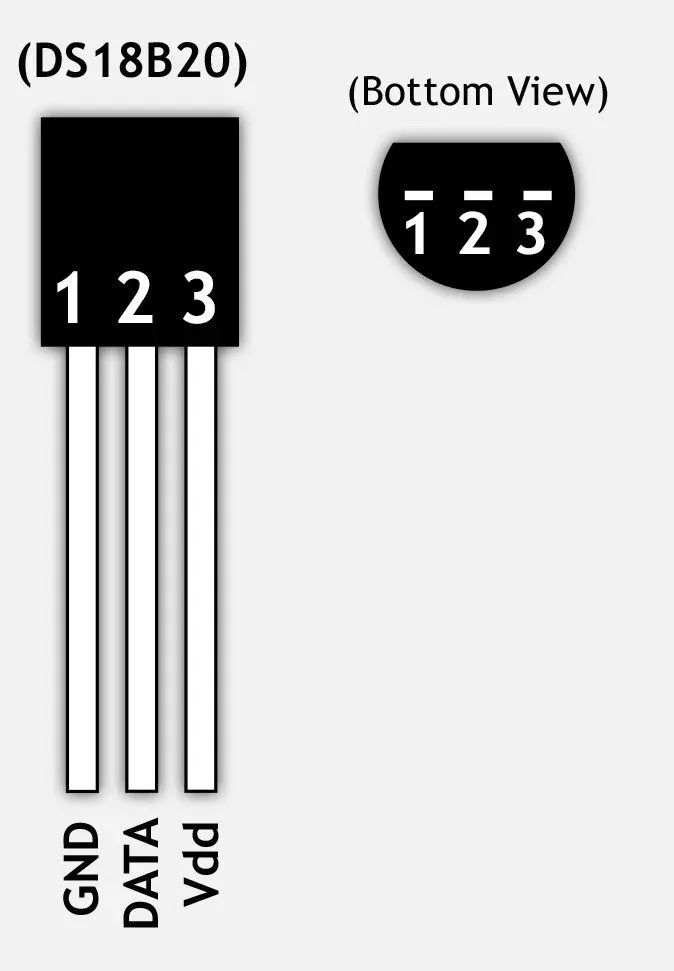 Here is the identification of the legs of the ds18b20 sensor: